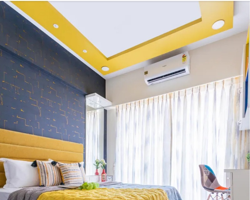 - The layered false ceiling design looks simple yet stylish.