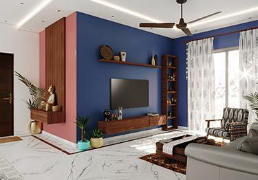 Chevron wall paint designs adorn with pastel shades of hues like baby blue, nude pink, and green are trending for the TV unit area. These colour choices and chevron wall trim best suit any of the bright colour shades.
